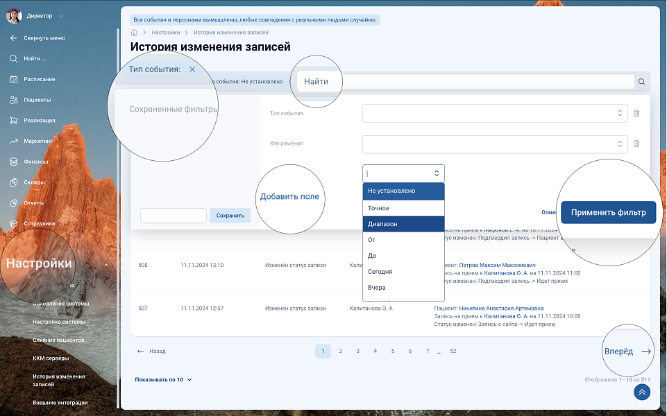Отображены все события, состоявшиеся в Matrix GO с указанием типа события, точного времени, подробностей и авторства.