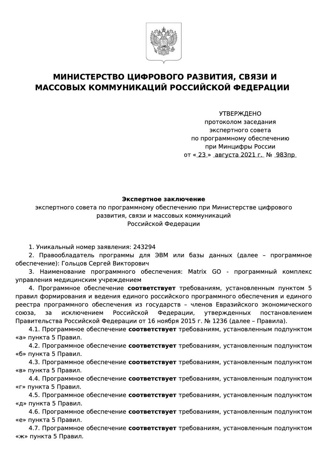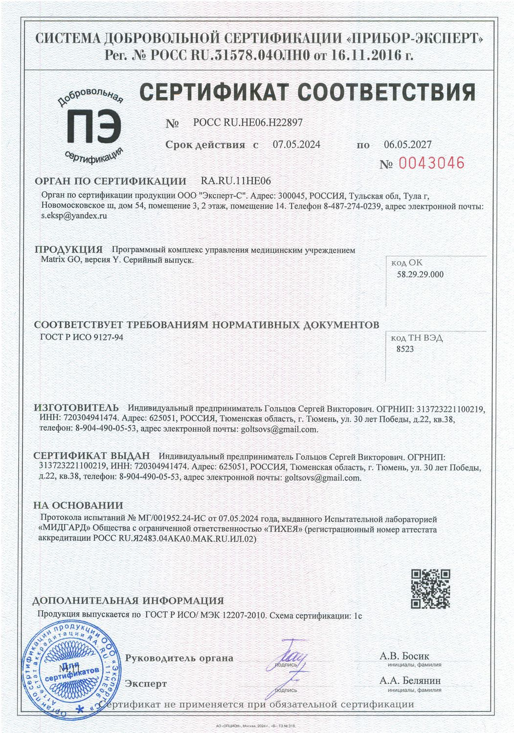 Новая версия Y, ориентирована на все потребности докторов и руководителей клиник. Получив возможность быть интегрированным в ЕГИСЗ, Matrix GO будет полезен, как частному кабинету, так и руководителю крупного госпиталя или даже сети клиник.