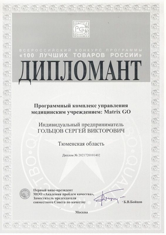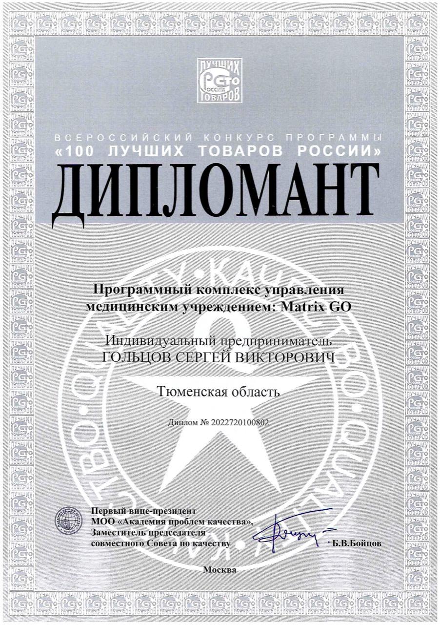 В 2024 году Matrix GO стал дипломантом конкурса 100 лучших товаров России и был включен в Единый реестр российских программ для ЭВМ и баз данных на основании приказа Министерства цифрового развития, связи и массовых коммуникаций Российской Федерации.