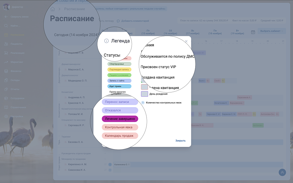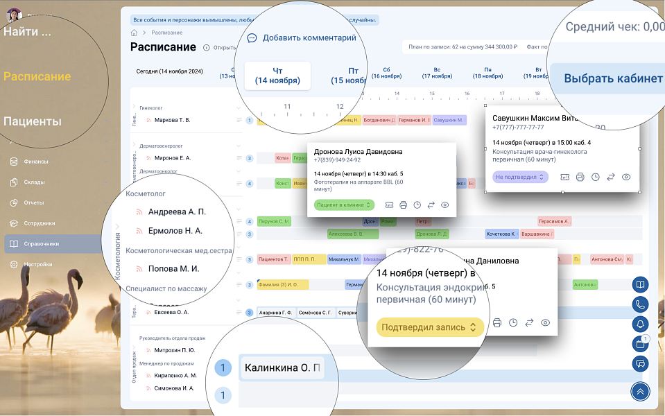 Красивое и лёгкое для восприятия расписание записи в клинику учитывает множество параметров.